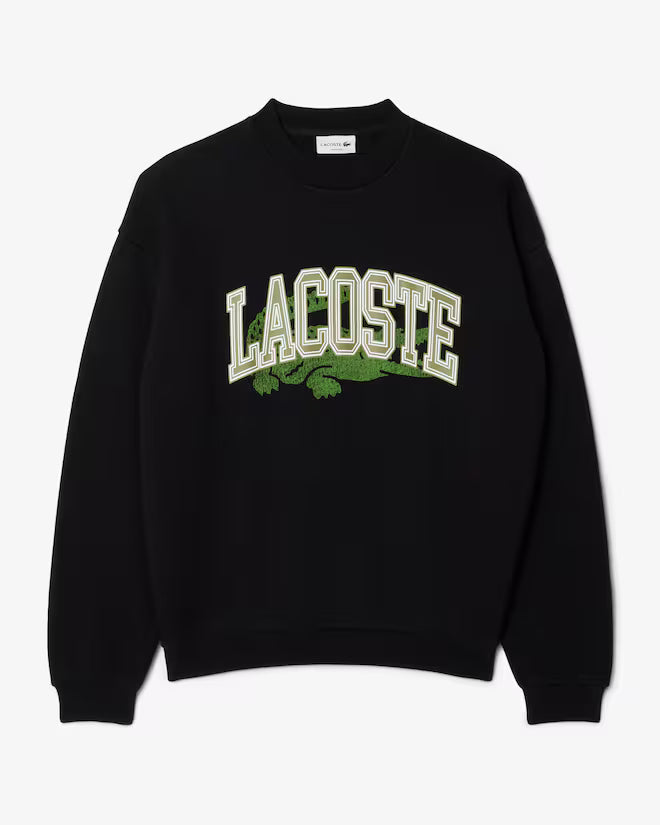 Experience refined casual wear with the Lacoste SH2850 Loose Fleece Sweatshirt in black. Crafted from super-soft fleece, its design draws inspiration from athletic training wear, combining warmth with unrestricted movement. The hip-hugging silhouette and exclusive print reflect Lacoste’s timeless French heritage, offering a sophisticated piece that seamlessly blends comfort and style for enduring wardrobe elegance.