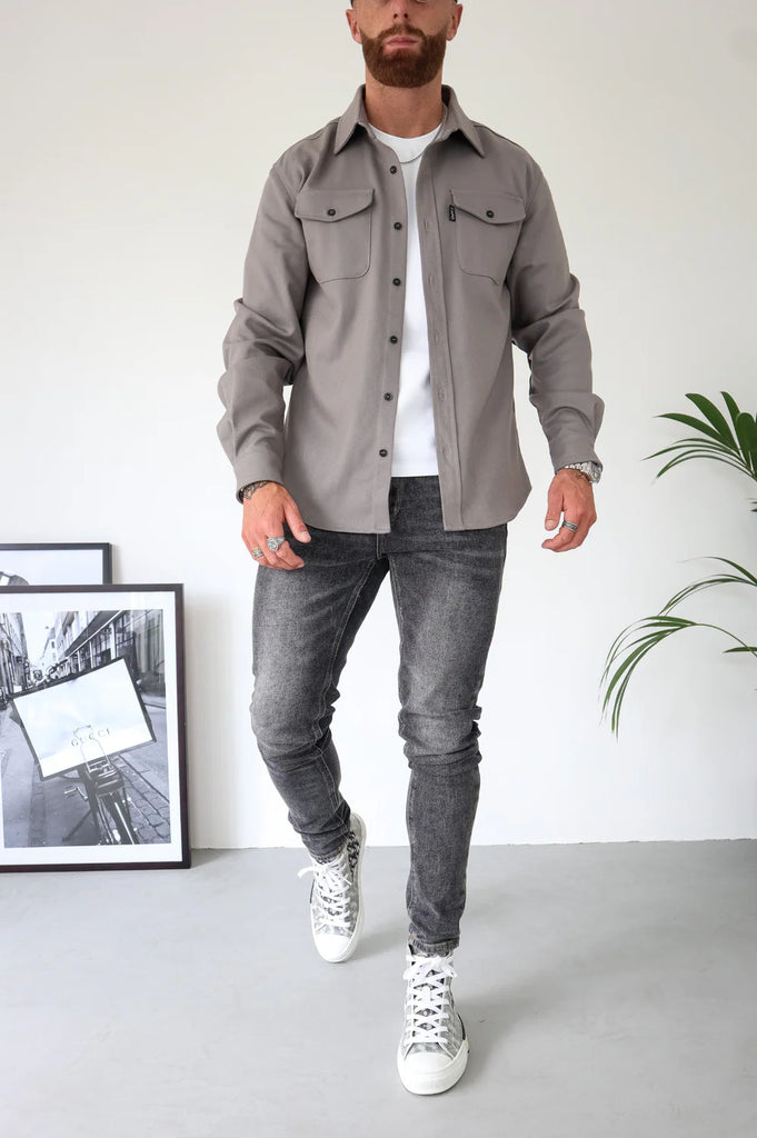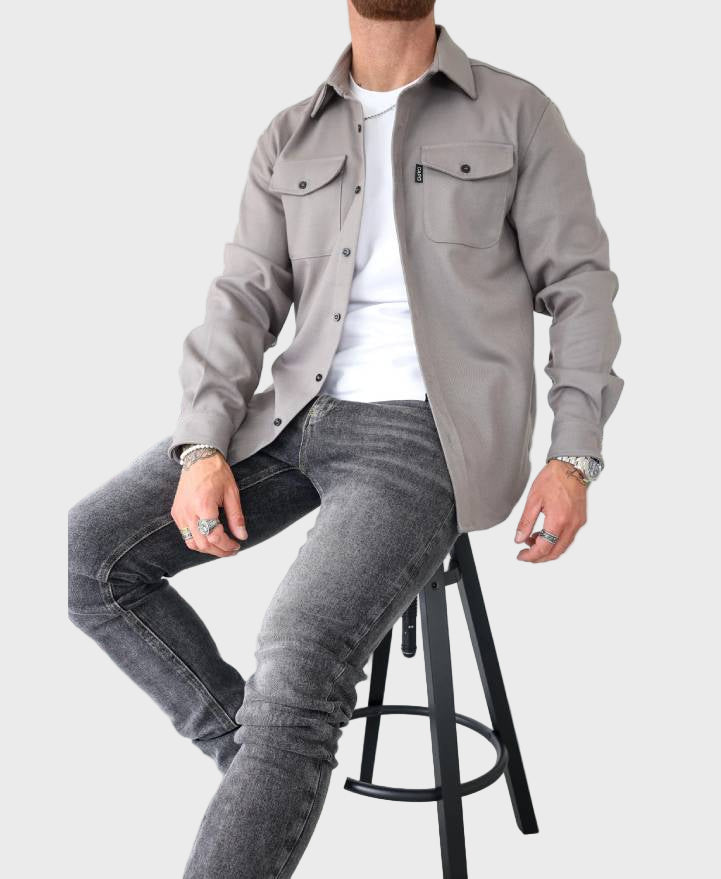 The Capo Overshirt in light grey combines a tailored fit with practical design. Featuring chest pockets with buttoned flaps and buttoned sleeve cuffs, it offers both style and functionality. Its clean, structured look makes it an ideal layering piece for a sharp, polished appearance. Perfect for elevating your everyday wardrobe while maintaining comfort throughout the day.