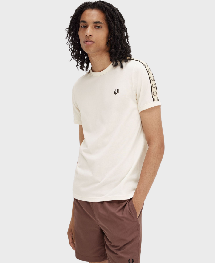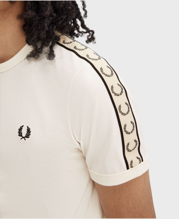 Introducing the Fred Perry M4613 Contrast Tape Ringer T-Shirt. Made with 100% cotton and machine washable, this t-shirt features our iconic branded track tape on the shoulder and sleeve. Not only does this detail add a touch of style, but it also serves a functional purpose of protecting seams and showcasing team logos and colours. A classic design that has stood the test of time.