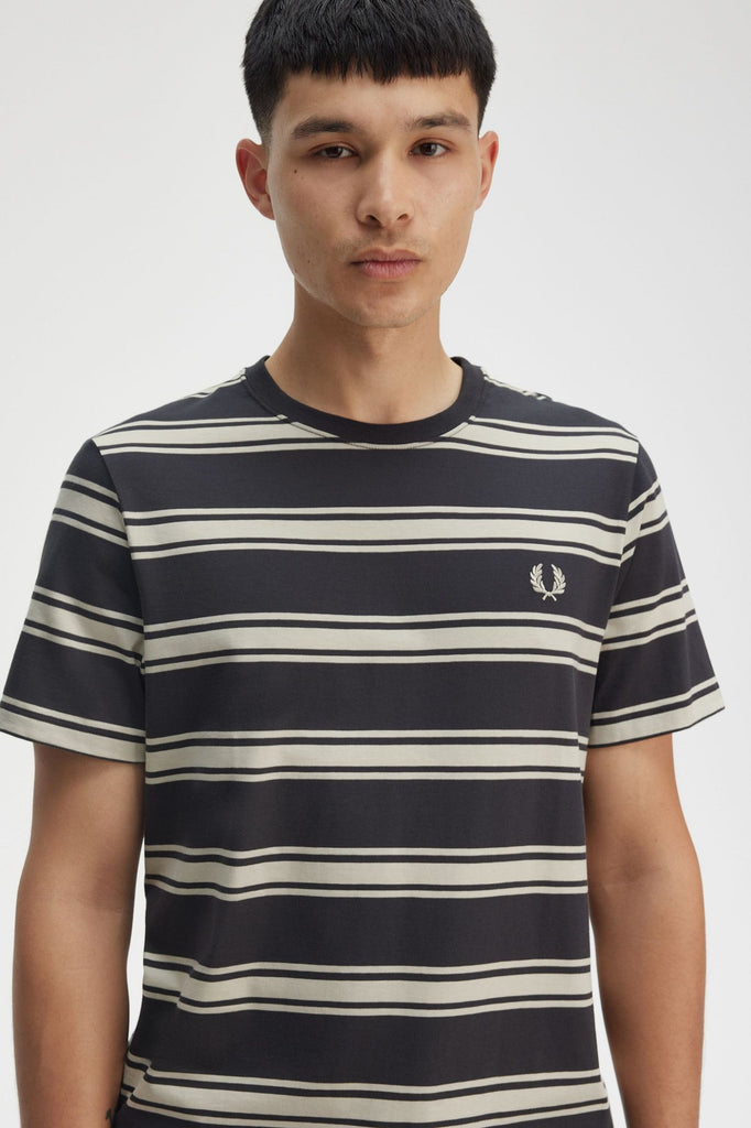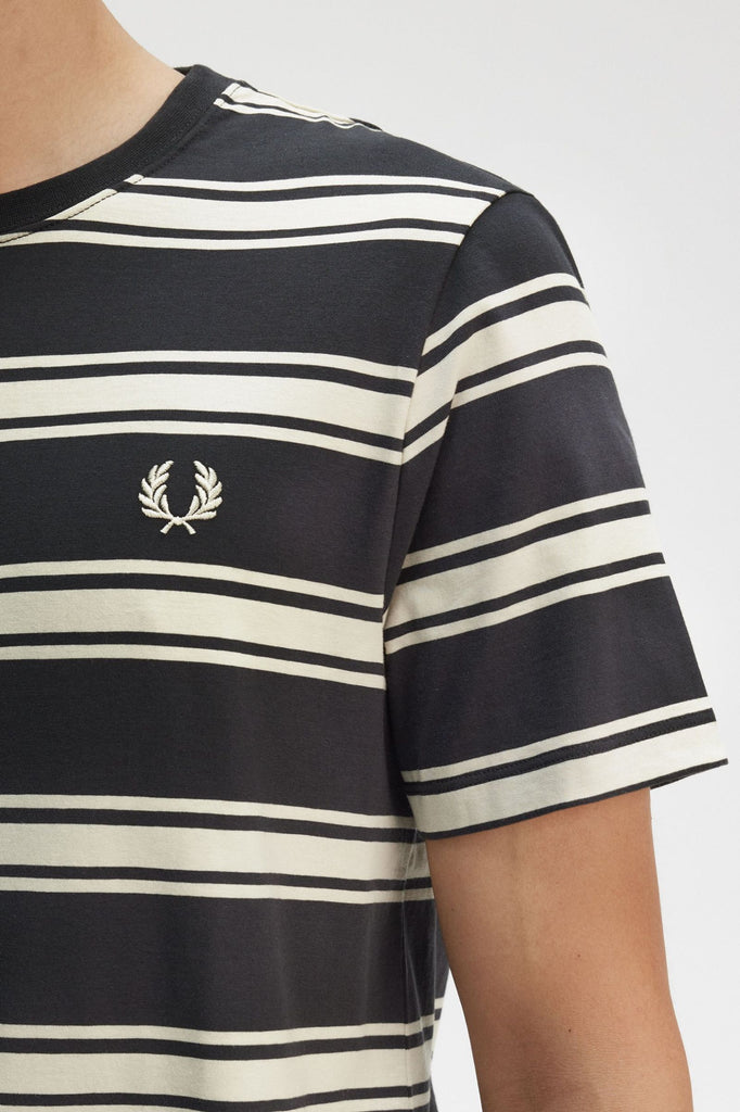 Upgrade your everyday look with the Fred Perry M9851 Fine Stripe T-shirt. Crafted with hardworking cotton, this tee features yarn dyed stripes and a contrasting ribbed crew neck. The perfect update to your jeans-and-tee aesthetic, built to last with a touch of modern interest.