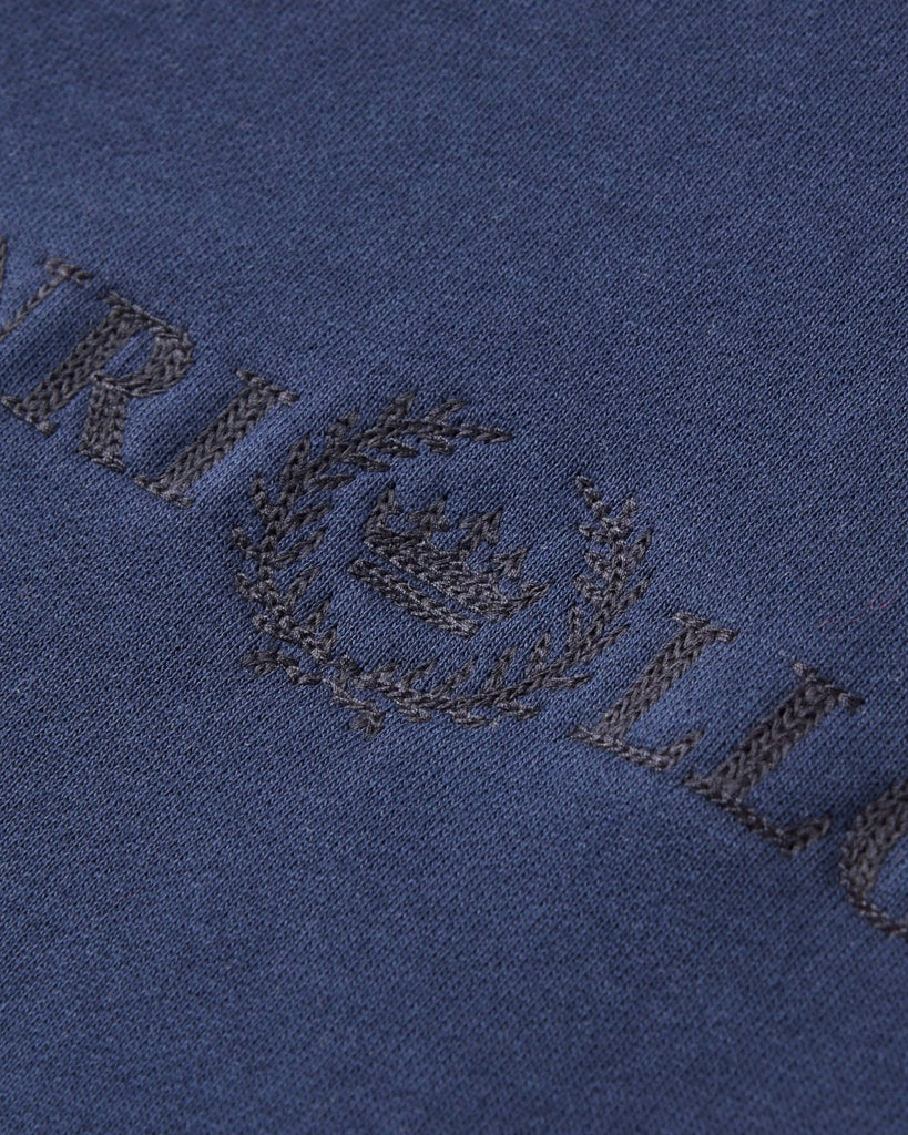 This Henri Lloyd Lytham Crew Neck Sweat in navy blue offers refined comfort through its heavyweight 315gsm brushback fabric, ensuring durability and a soft touch. Thoughtfully designed with ribbed collar and cuffs, it features distinctive large chain stitch branding on the chest, merging timeless craftsmanship with contemporary style. Ideal for those seeking understated elegance in casual wear.