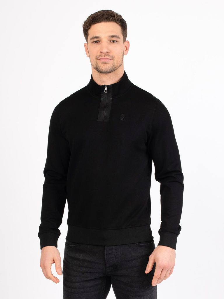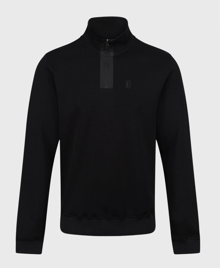 Stay warm and look sharp with the Luke 1977 M710301 Full Hardy Zip Sweatshirt Jet Black. It's made from a premium modal blend for maximum comfort and features a quarter zip detailed with webbing tape and red zip teeth. The sweat is complete with a shiny metal lion emblem and soft rib trims, making it the ideal choice for an elevated off-duty look.