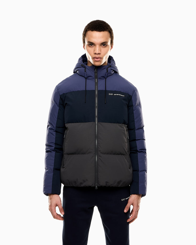 This EA7 Emporio Armani bomber jacket combines contemporary streetwear aesthetics with refined functionality. Crafted from durable nylon, it features a striking colour-block design that captures the bold spirit of the Athletic Colour Block collection. The drawstring hood provides adjustable coverage, whilst the full zip fastening ensures effortless layering. Dual side zip pockets offer practical storage without compromising the sleek silhouette. Perfect for those seeking modern style with an edge, this jacket seamlessly transitions from casual to smart-casual settings.