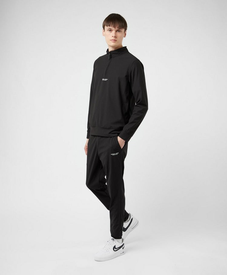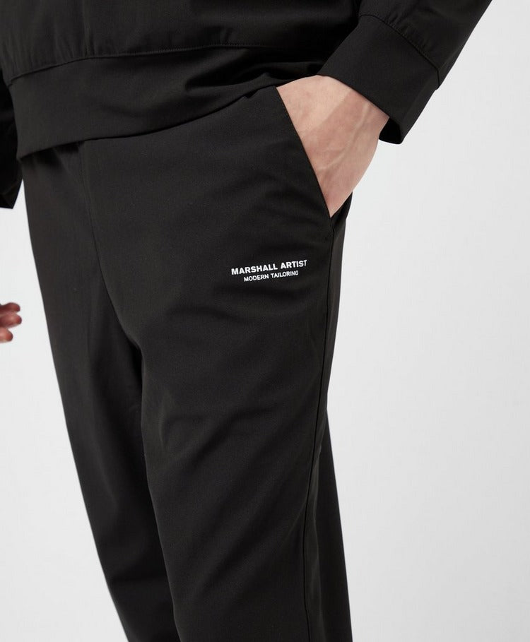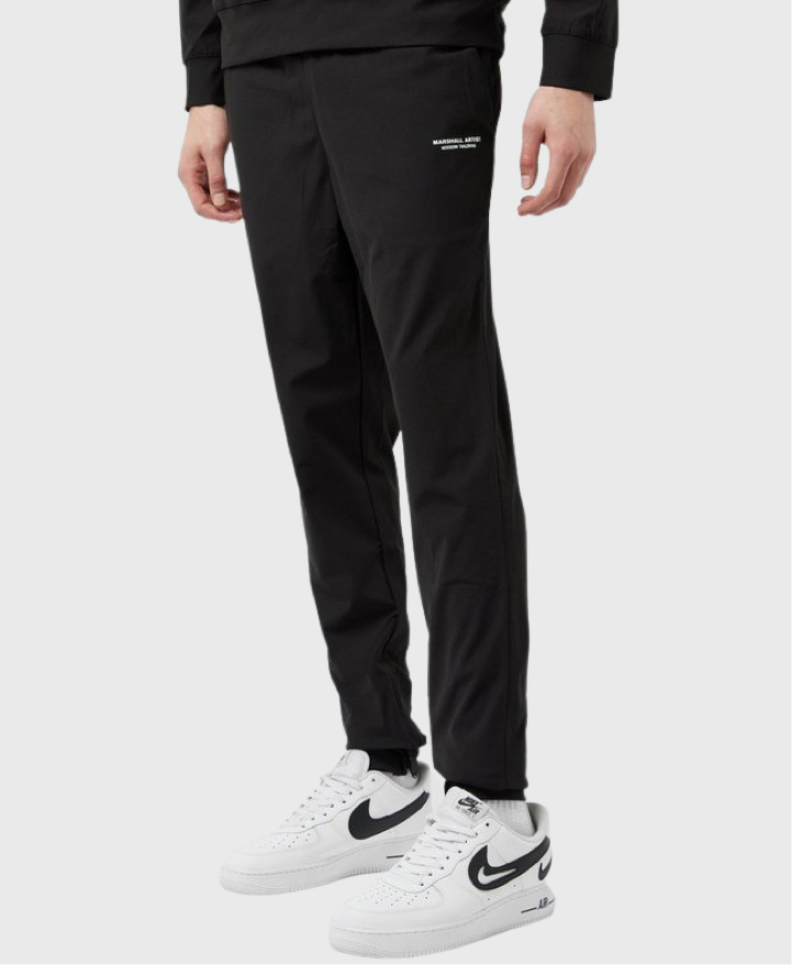 Regular fit, Black soft-shell straight leg training pants with Marshall Artist