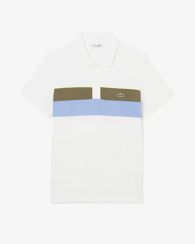 This Lacoste polo reimagines a timeless classic with a sophisticated colour-block design in crisp white and khaki. Crafted from soft Petit Piqué cotton, it offers lasting comfort and elegance. The regular fit ensures a polished silhouette, while the signature embroidered crocodile adds an iconic finishing touch—perfectly blending refined style with sporty heritage.