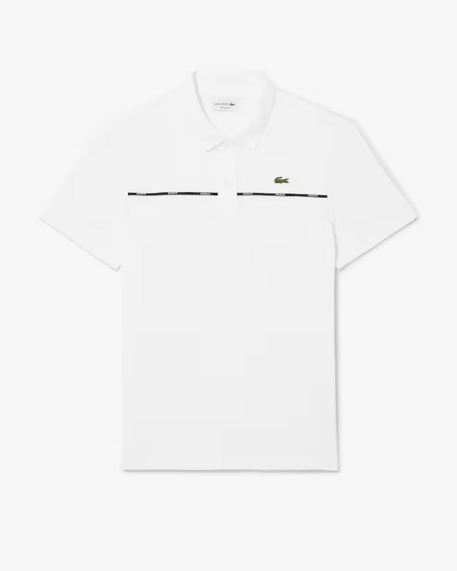 This Lacoste polo reinterprets the brand’s timeless classic with refined graphic details. Crafted from supple petit piqué fabric, it offers a smooth, elegant texture paired with a comfortable straight cut. The contrasting central trim, subtly printed with branding, adds a modern touch to this sophisticated, casual chic essential. Ideal for effortlessly elevating your wardrobe.