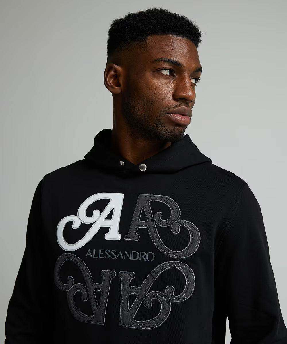 This overhead hoodie features a popper-fastened neck and a fixed hood, complemented by ribbed cuffs and hem to ensure a comfortable, snug fit. Crafted from soft 100% cotton, it offers a regular fit and showcases a bold Alessandro graphic on the chest, combining style and comfort effortlessly.