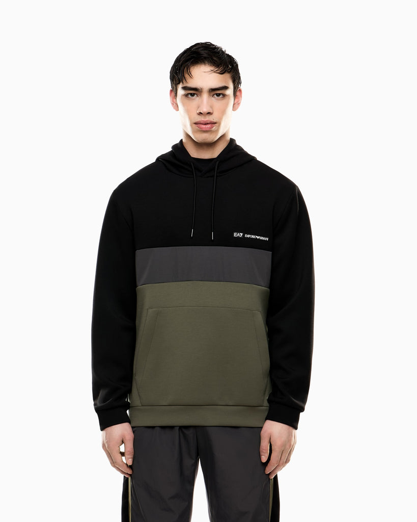 EA7 Emporio Armani 7M000937 Athletic Colour Block Hooded Sweatshirt - Green