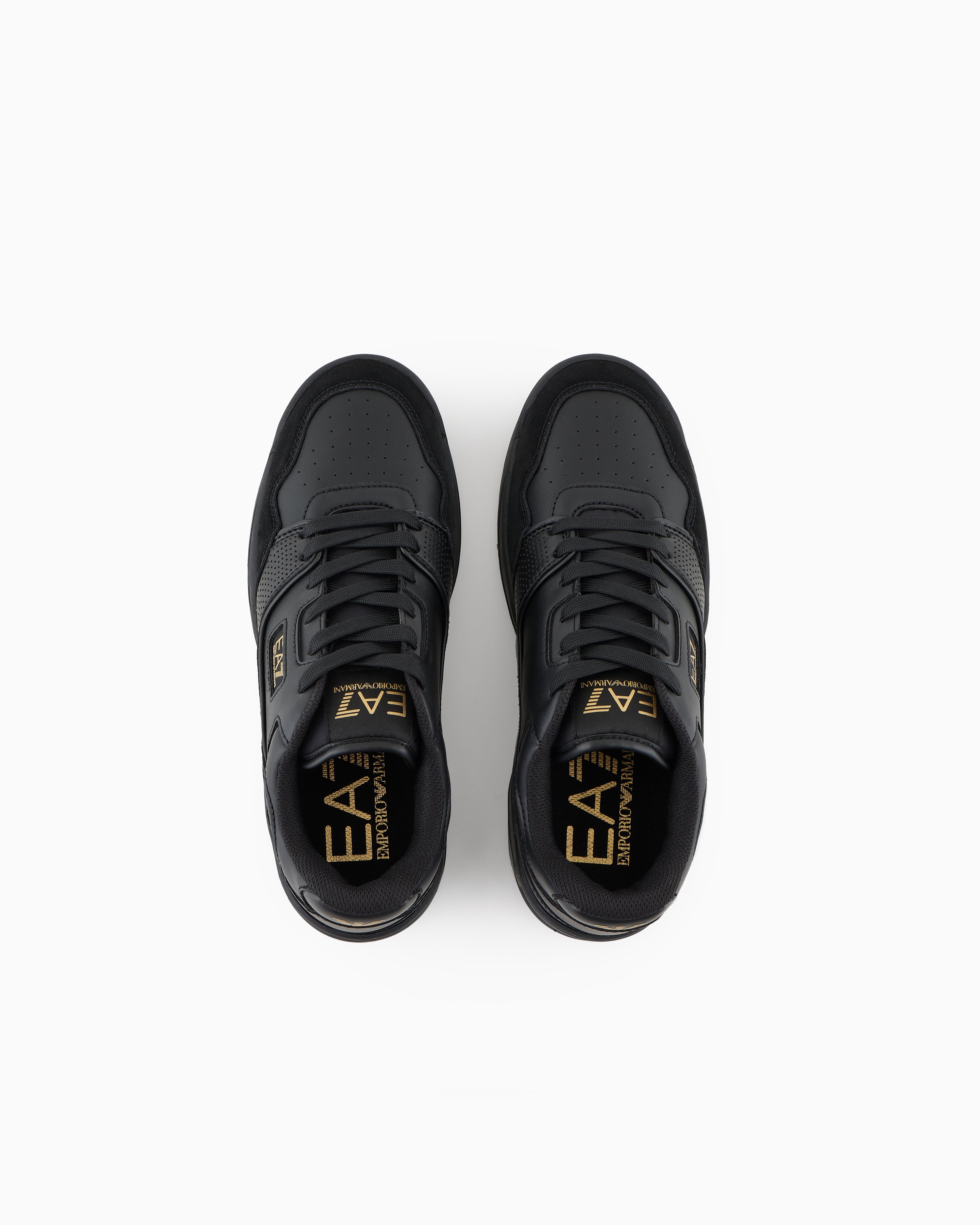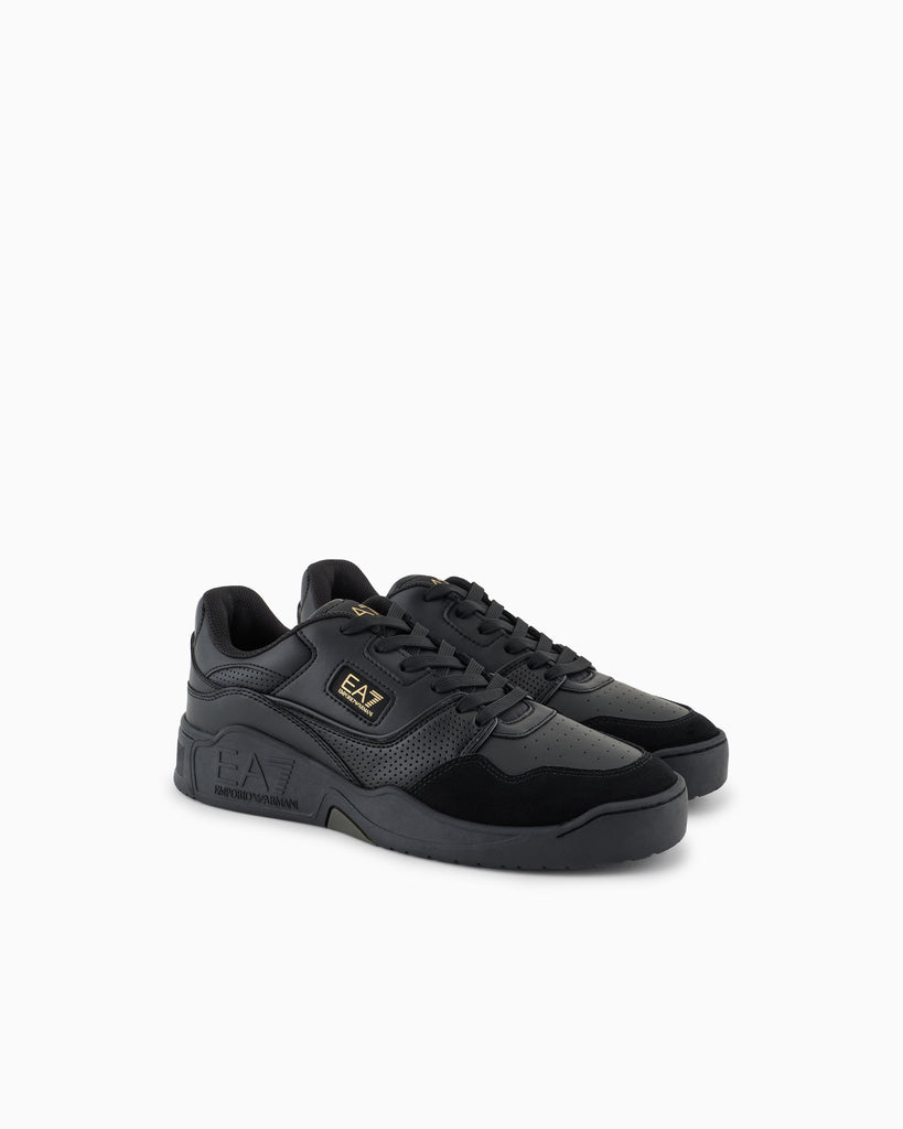 These basketball-inspired sneakers feature a striking, dynamic design that stands out. Crafted from two-tone leather and rubber, they showcase a contrasting EA7 logo on the side for a bold statement. Ideal for casual wear, they offer both style and versatility for your leisure moments.
