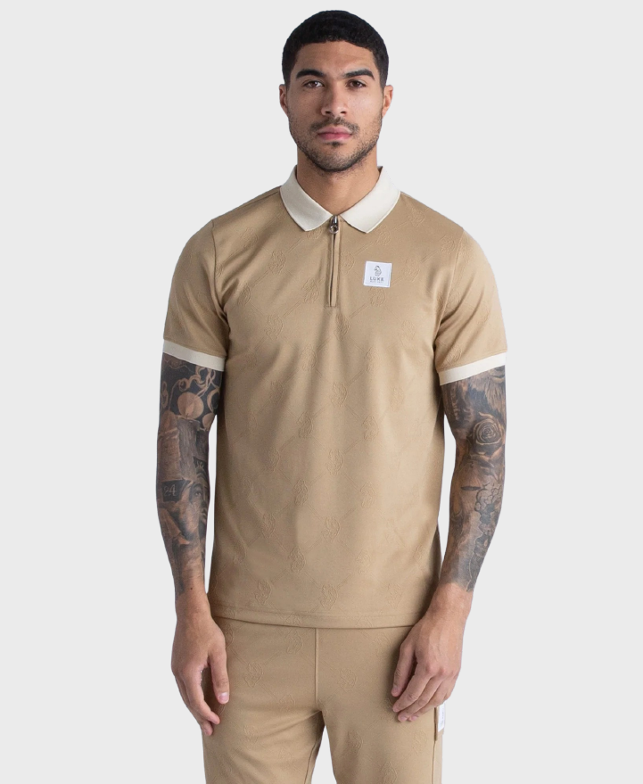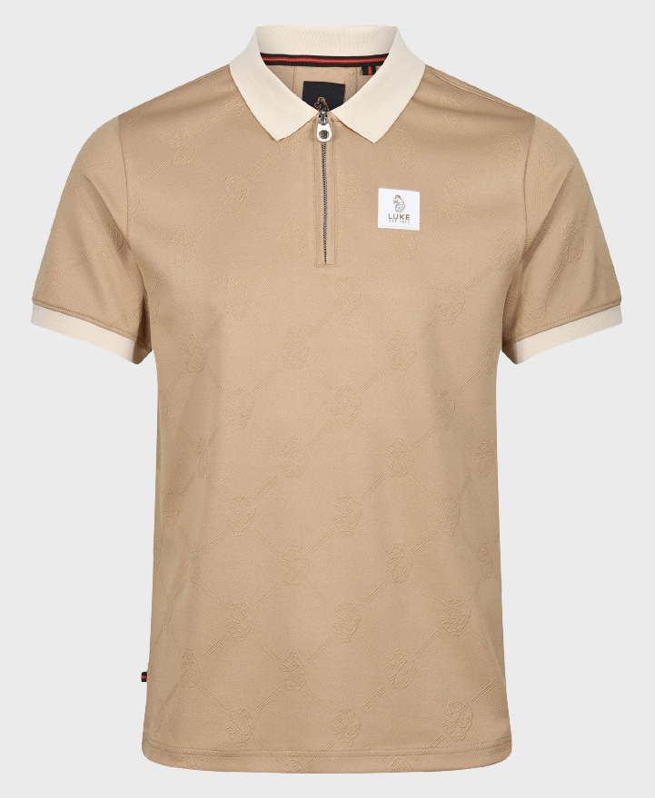 Upgrade your off-duty looks with this stylish quarter zip polo from LUKE. Boasting a subtle all-over jacquard fabric featuring the iconic LUKE lion head and stripe, it also features a contrast rib collar and sleeve cuffs. Details include a chrome metal zip puller and LUKE EST. 1977 woven badge.
