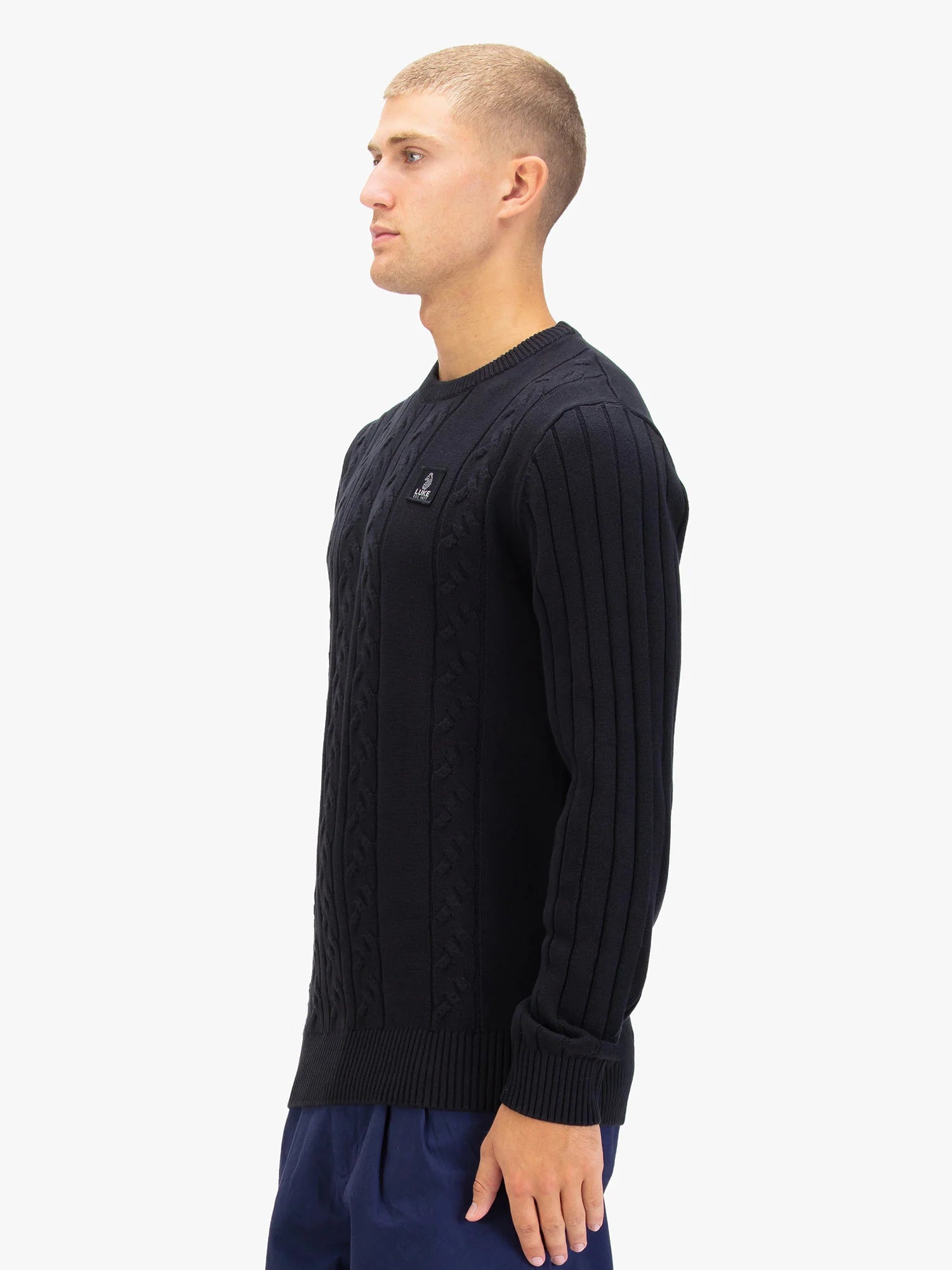 This long-sleeved cable knit jumper from LUKE is an essential piece for your winter wardrobe. Made from a premium cotton blend, it offers both comfort and warmth. The soft ribbed trims add subtle detail, while the signature LUKE EST. 1977 woven label on the left chest completes the stylish look.