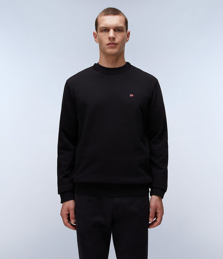 The Napapijri Balis Crewneck 041 Black is the ultimate top layer for cooler weather. Made with a comfortable cotton blend, this crew neck sweatshirt features ribbed trims and embroidered details for a fresh and stylish finish. A must-have wardrobe essential for any fashion-forward individual.
