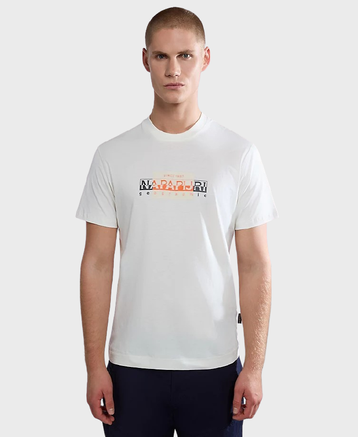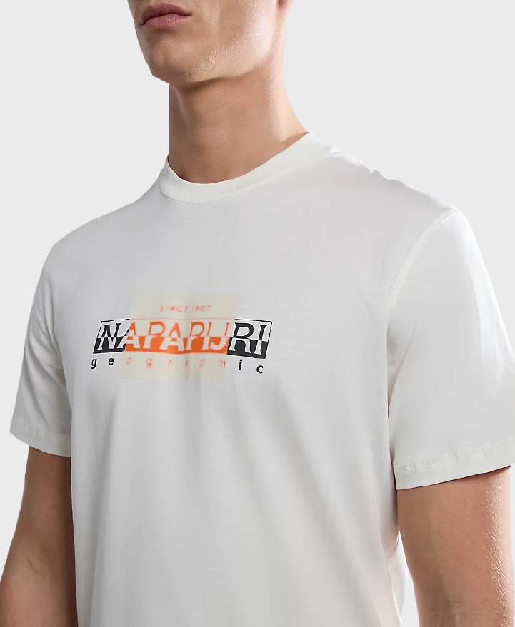 Expertly crafted from 100% cotton, the Napapijri Smallwood T-Shirt White Whisper offers unbeatable comfort and a timeless, clean style. With a crew neck, regular fit, and signature graphics emblazoned on the chest, it's a versatile addition to any wardrobe, perfect as a casual tee or a layering piece.