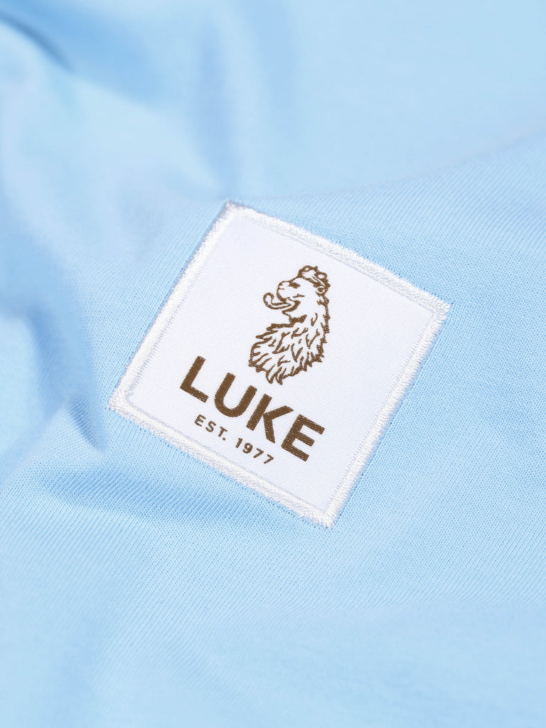 This Luke 1977 T-shirt features a lightweight and comfortable 100% cotton material, perfect for all-day wear. Its stylish design includes a patched logo, adding a touch of uniqueness to this classic sky blue shirt. Ideal for those seeking both comfort and style.