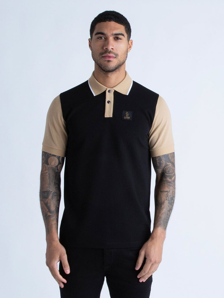 Elevate your smart/casual look with the LUKE M741454 Saddleworth Polo. Crafted from premium cotton pique for ultimate comfort, this polo features striking contrast panelling and black military buttons for a refined touch. The brand's signature woven badge and tri-colour trim tape make it iconic, while the check print detailing adds a subtle pop.
