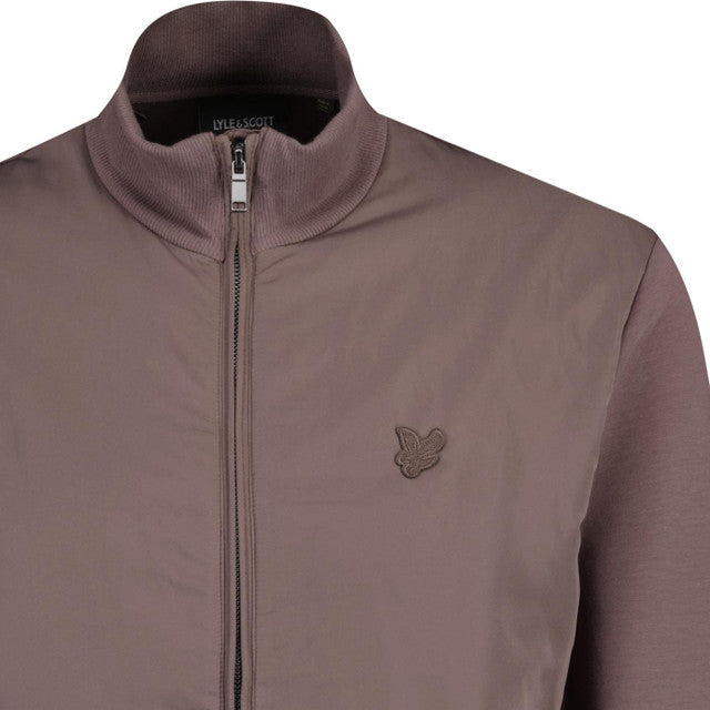 The Tonal Hybrid Jacket in Plum Truffle from Lyle & Scott combines vintage aesthetic with contemporary practicality. Featuring a distinctive 80s-inspired funnel neck collar and concealed zip fastening, this lightweight layer delivers effortless style for spring and summer. Crafted from weather-resistant cotton blend, it offers reliable protection without bulk. Ribbed cuffs and two secure zip pockets provide functional detail, whilst the tonal eagle applique on the left chest adds understated brand heritage. An elevated alternative to traditional bombers for those seeking refined layering with character.