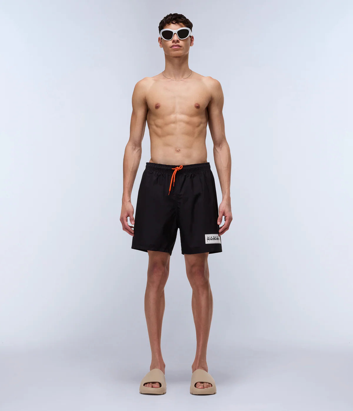 Napapijri's Box Logo Swim Shorts combine functional design with distinctive branding. The vibrant orange drawstring fastening provides secure adjustment, whilst the elasticated waistband ensures comfort throughout the day. The signature Napapijri Geographic logo features striking contrast detailing that captures attention. Crafted for the discerning gentleman, these swim shorts deliver both style and practicality for coastal escapes and poolside occasions.