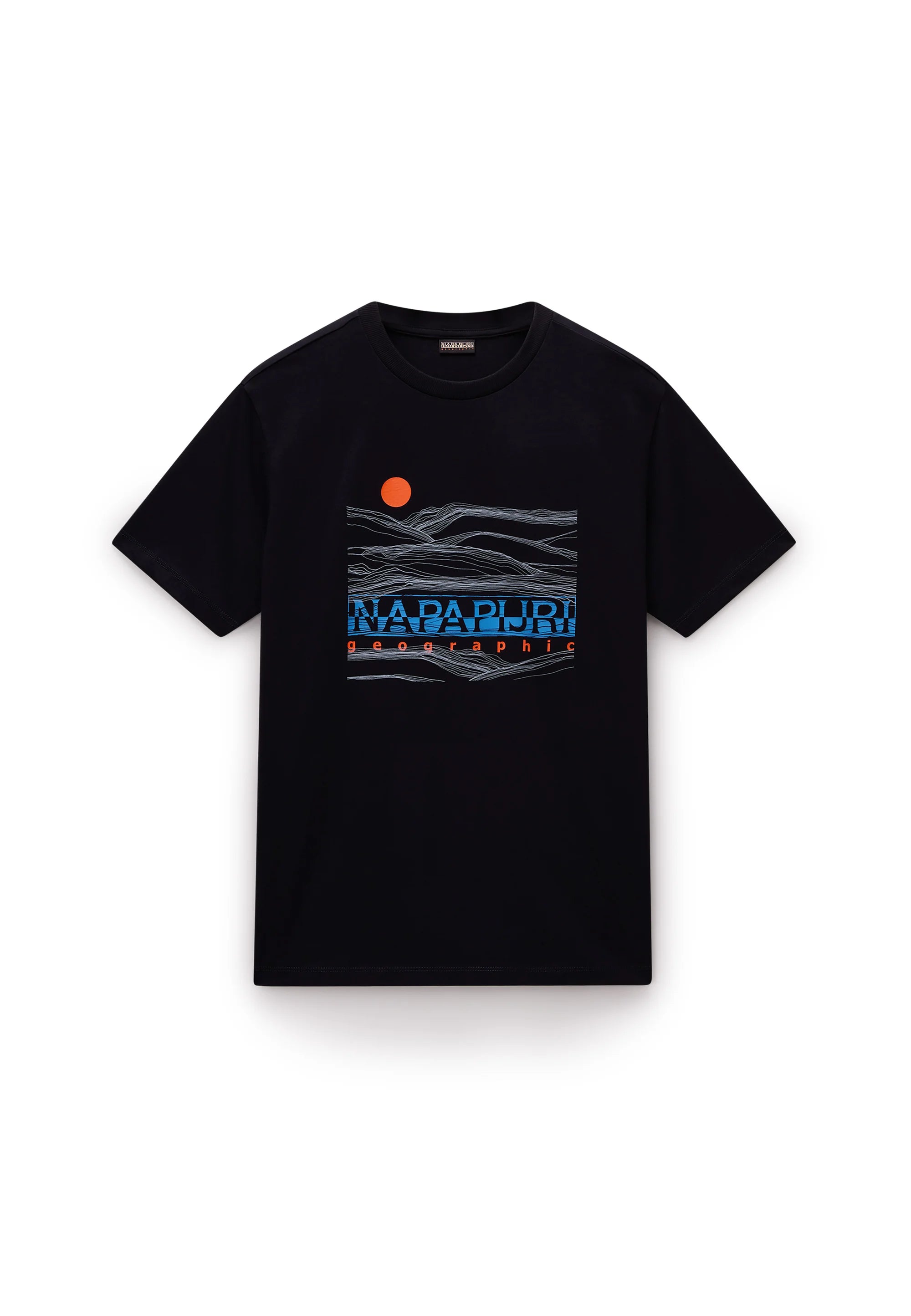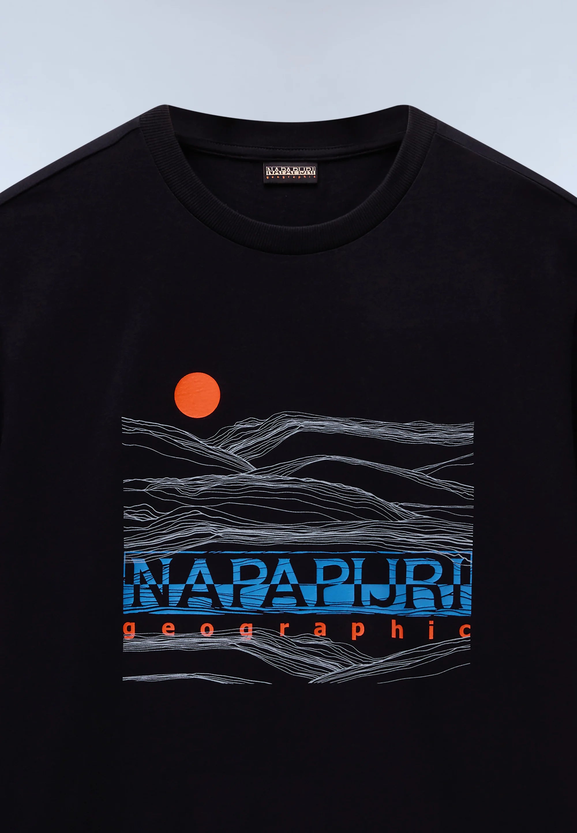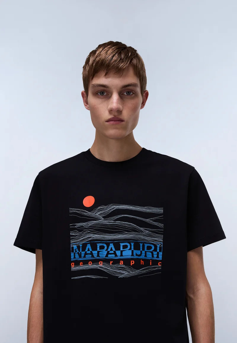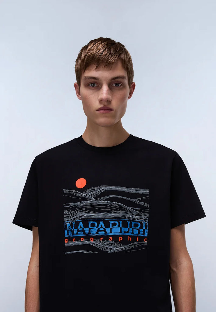 The Napapijri Buti T-Shirt exemplifies understated elegance with its striking large graphic print rendered in bold monochrome. Crafted from 100% cotton jersey, this piece delivers exceptional comfort and breathability for everyday wear. The regular fit silhouette provides a flattering, versatile cut that transitions effortlessly from casual to smart-casual settings. Finished with a classic crew neck, this tee serves as a refined foundation for any contemporary wardrobe.