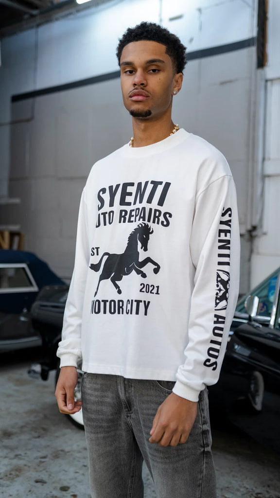 Syenti Motor City Long Sleeve T-Shirt Off White