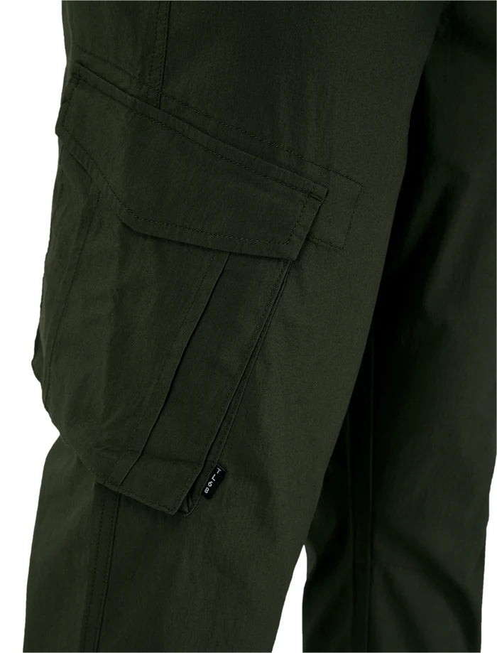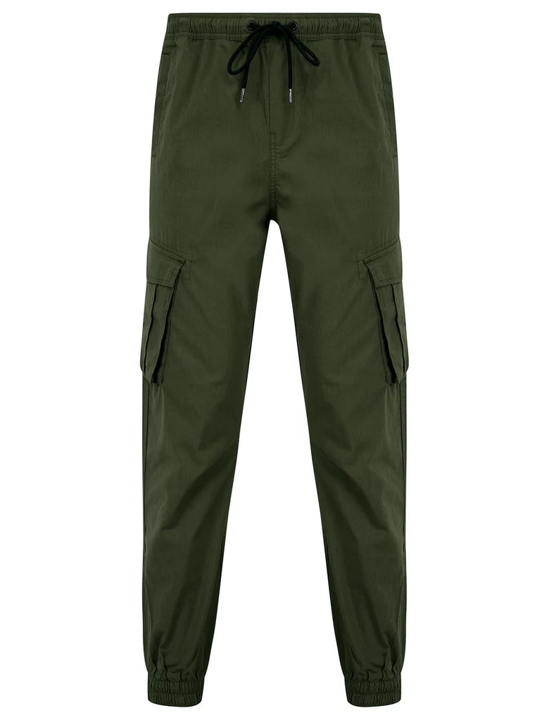 Tokyo Laundry's Fairbanks cargo trousers blend practicality with refined casual style in a sophisticated green shade. Constructed from a resilient cotton, nylon, and elastane blend, these trousers deliver durability alongside responsive stretch for unrestricted movement. The thoughtfully positioned utility pockets—including combat-style thigh pockets and welted side and rear pockets—provide substantial storage without compromising the clean silhouette. An elasticated waistband and finished cuffs ensure a secure, adaptable fit suitable for both active pursuits and relaxed evenings. Versatile enough to complement everything from structured long-sleeve shirts to understated tees, these trousers represent an essential addition to any discerning wardrobe.