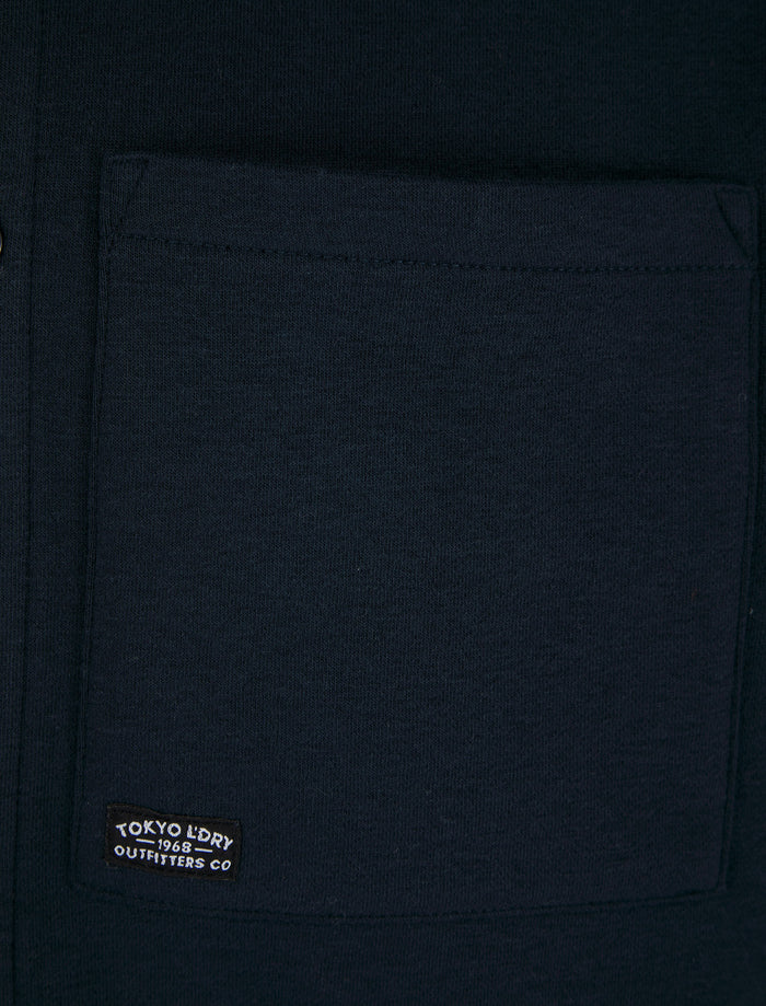 The Tokyo Laundry TL Commander overshirt in sky captain navy offers a refined blend of comfort and style. Crafted from a premium cotton blend fleece, it provides warmth and softness. Its button-fastening and classic collar deliver a timeless look, while the large chest pocket adds practicality. Perfect for casual wear, this versatile piece pairs easily with jeans or cargo trousers, enhancing your everyday wardrobe with understated sophistication.