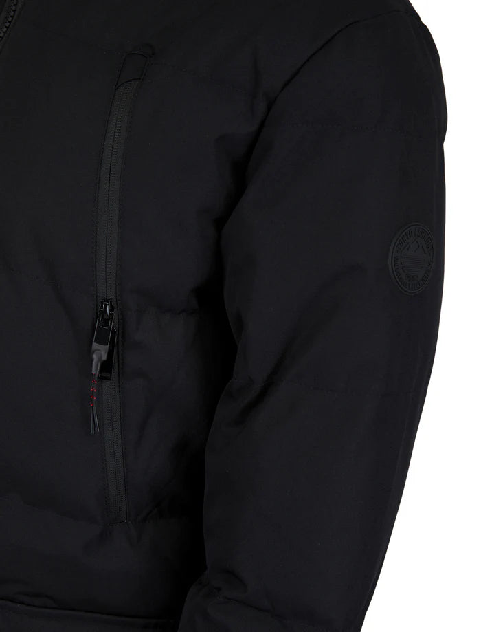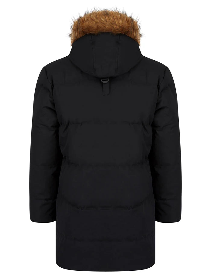 The 'Darryl' padded parka in jet black, featuring a cozy faux fur-trimmed hood, is your winter weather hero. Built tough with a PVC-coated shell to keep the worst of the chill at bay, it’s packed with warm details like ribbed storm cuffs and a quilted lining that hugs you inside and out. Zip up easily, stash your gear in plenty of handy pockets, and show off the cool branded badge on the sleeve. Perfect for layering over jeans and a jumper, this parka blends practical warmth with that effortless street style vibe.