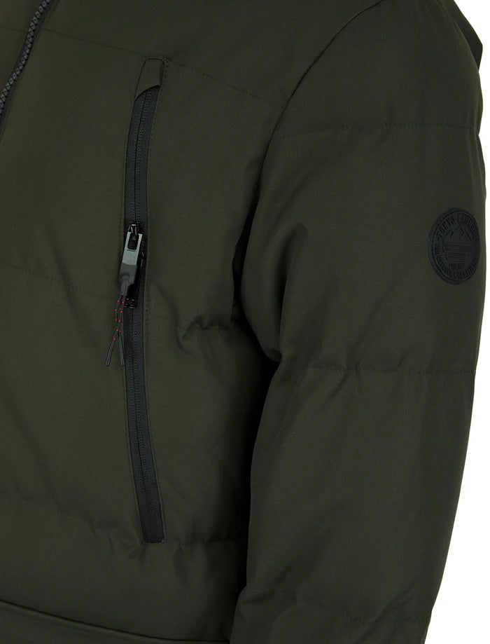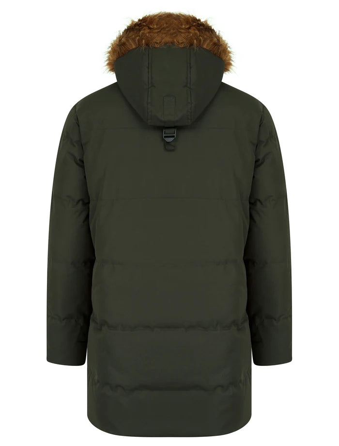 The 'Darryl' padded parka in khaki green, featuring a cozy faux fur-trimmed hood, is your winter weather hero. Built tough with a PVC-coated shell to keep the worst of the chill at bay, it’s packed with warm details like ribbed storm cuffs and a quilted lining that hugs you inside and out. Zip up easily, stash your gear in plenty of handy pockets, and show off the cool branded badge on the sleeve. Perfect for layering over jeans and a jumper, this parka blends practical warmth with that effortless street style vibe.