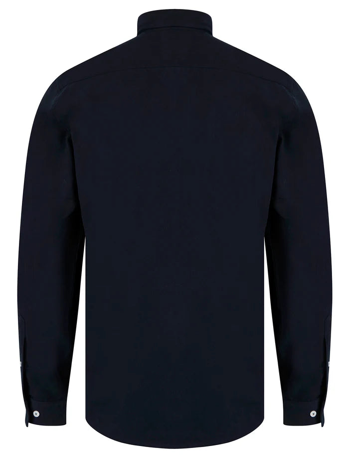 The Tokyo Laundry Holkham shirt in sky captain navy is a smart, comfy long sleeve made from lightweight cotton twill. Its button-down collar and neat fit make it perfect for both dressing up and chilling out, while the subtle Tokyo Laundry logo adds a cool touch. Easy to match and easy to wear!