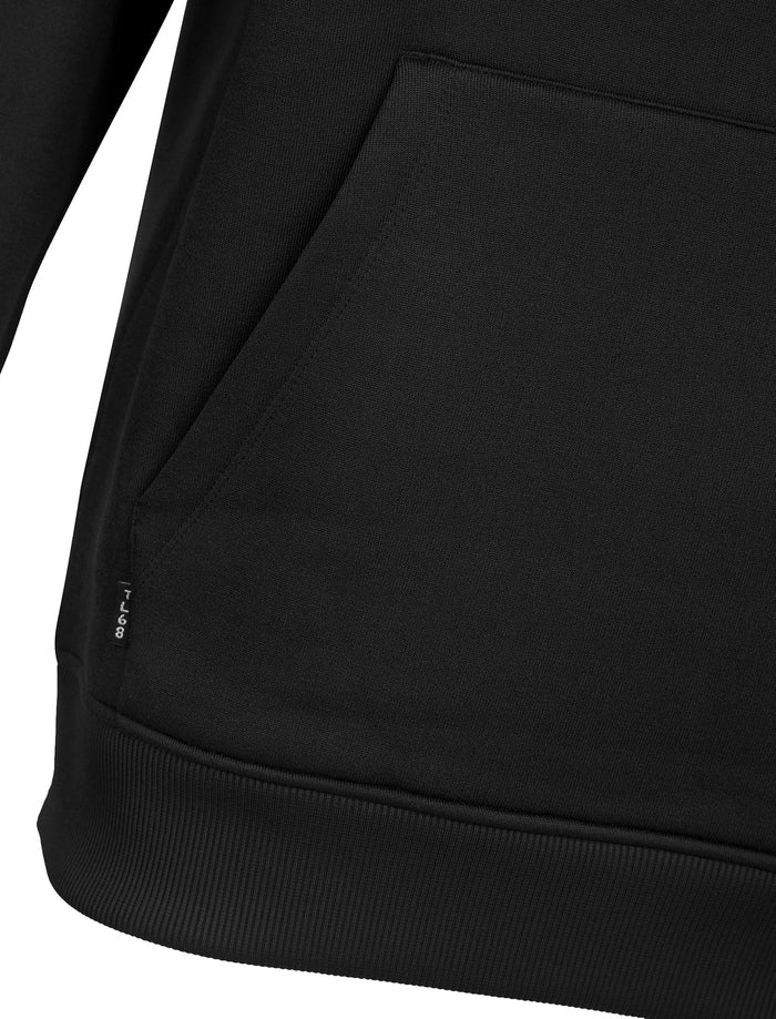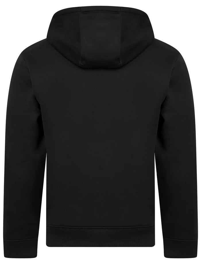 This 'Valdemar' Plain Brushback Fleece Pullover Hoodie in jet black from Tokyo Laundry is your go-to for chill days and casual vibes. Crafted from soft, durable fleece, it boasts a toasty inside with a sleek outside—perfect for gym runs, lazy weekends, or anything in between. The lined hood keeps you cozy, while rugged boot lace drawcords with rubber tips add a handy touch of toughness. With ribbed cuffs and hem locking in warmth, plus a trusty kangaroo pocket for your essentials (or to warm your mitts), it’s simple, smart, and ready to roll with your jeans or joggers. Your comfy, cool companion awaits!