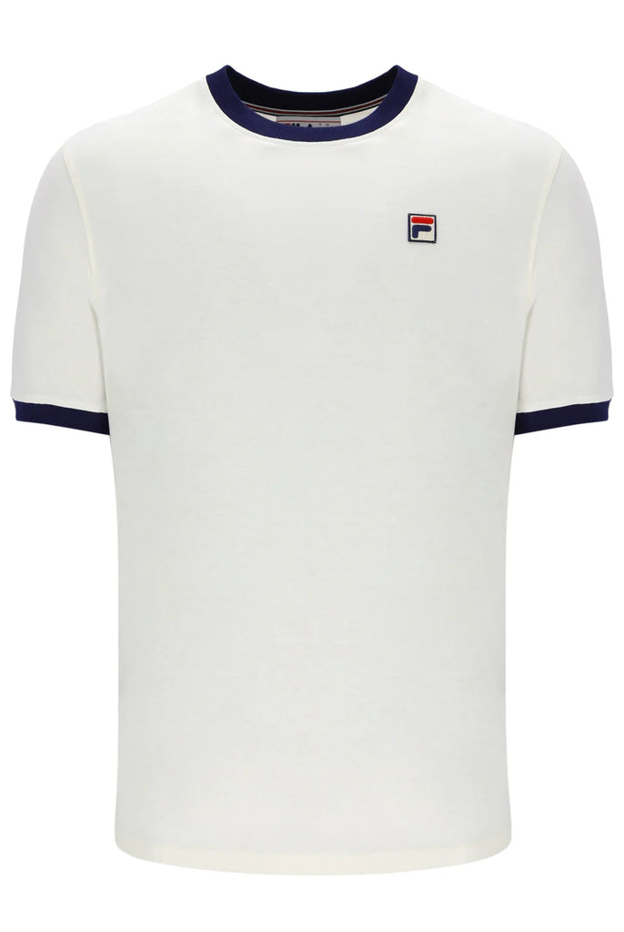 Elevate your casual wardrobe with the Fila Marconi Ringer T-Shirt in Gardenia/Fila Navy and Gardenia. Crafted from premium cotton, this tee provides a soft feel and a refined fit that complements any ensemble. Its classic ringer design adds a touch of timeless style, making it an ideal choice for effortless sophistication and everyday comfort.