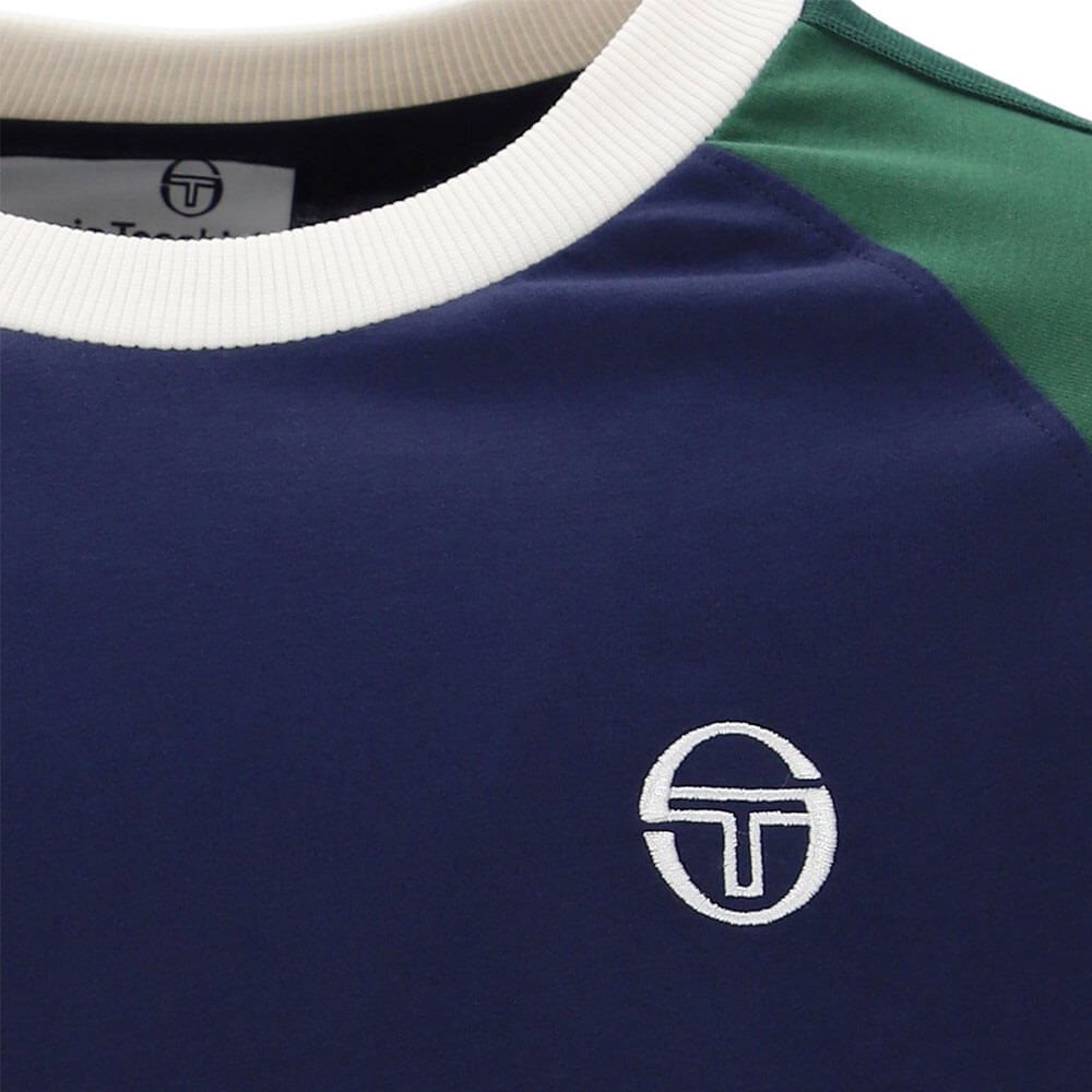 The Sergio Tacchini Hadow Ringer T-Shirt in Black/Garenia seamlessly merges classic refinement with athletic influences. Constructed from 100% cotton, it offers a regular fit that provides comfort while maintaining a polished silhouette. Highlighted by contrasting crew neck and sleeve cuffs, complemented by subtle taped shoulder details, this shirt exudes modern sporty charm. The signature embroidered chest logo adds a finishing touch, elevating your casual attire with quiet elegance and distinctive style.