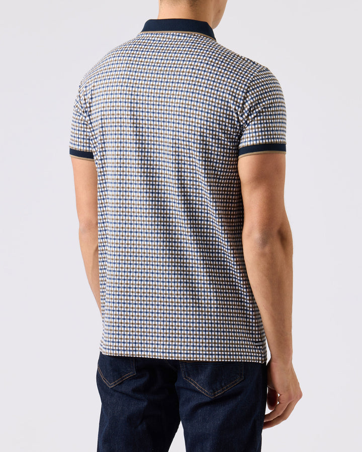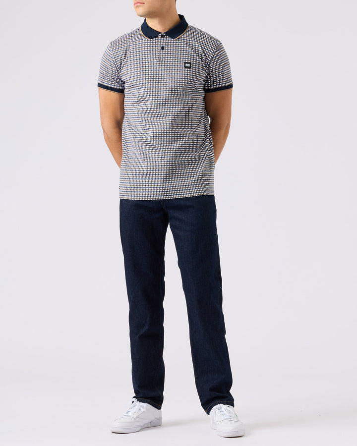 The Miller polo is crafted from knitted 100% combed cotton single jersey, with a signature 3-colour house check design. This polo features a navy knitted rib collar and sleeve cuffs, with contrast tipping, plus WO branded buttons at the placket and a small WO badge to the left chest. A perfect choice for a timeless and stylish look.