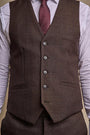 Elevate your style with the Cavani Caridi Waistcoat Brown. Made in a subtle check fabric, this slim fit waistcoat brings a touch of sophistication to your wardrobe. The contrast buttons and satin lining add a trendy and smart touch to any outfit. Enjoy a perfect fit with the 5-button fastening and adjuster strap.