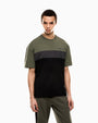EA7 Emporio Armani 7M000935 Athletic Colour Block Cotton-Blend Crew-Neck T-Shirt - Green