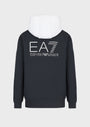 Contrast Whitel hood and side arm colour block panelling finished with left chest contrast EA7 left chest and back embossed graphic design