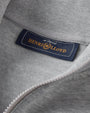 Crafted from heavyweight 315gsm brushback sweat fabric, this grey sweatshirt offers both warmth and refined style. Featuring a ribbed collar and cuffs, a smooth YKK quarter zip, and a sleek raglan armhole design, it ensures comfort and ease of movement. Subtle Laurel and Crown embroidery at the chest adds a touch of understated elegance, making it an ideal piece for layering or wearing on its own in cooler weather.