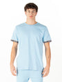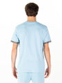 Elevate your summer style with the Luke 1977 M800153 Nelson Text Cuff Shirt in Sky Blue. Made of soft, pure cotton, this crew neck tee features a timeless rib neck and striking contrast ribbed cuffs. The cuffs are adorned with a signature LUKE est. 1977 print, adding a touch of visual interest. Don't miss out on this season's must-have piece, complete with iconic tri-colour trim tape.