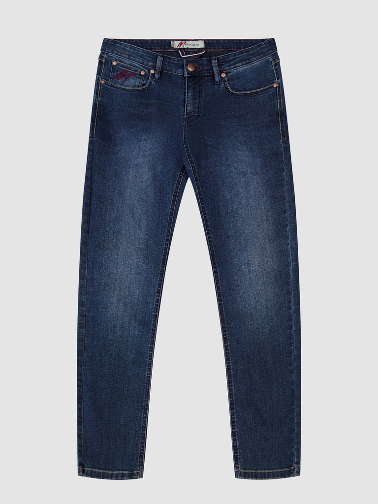The Mish Mash 1984 Outlander Tapered Fit Jeans in Blue/Black combine refined tailoring with everyday comfort. Featuring a regular rise and a slightly wider thigh that gracefully tapers from the knee to a 14.5-inch hem, these jeans sit just below the waist to create a modern, sophisticated silhouette suitable for any occasion.