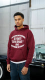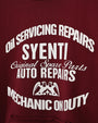 Embrace understated elegance with the SYENTI Mechanic Hoodie in rich burgundy. Crafted from substantial 420GSM pure cotton, this relaxed-fit piece delivers exceptional comfort and durability. The drop shoulder silhouette creates an effortlessly refined aesthetic, while the off-white centre chest screen print logo adds a subtle design element. Unfolded seam detailing elevates the construction, showcasing quality craftsmanship. Perfect for layering or standalone wear, this heavyweight hoodie transitions seamlessly from casual to smart-casual occasions.