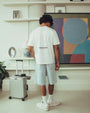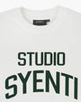 Elevate your casual wardrobe with this oversized drop-shoulder tee, crafted from premium 250 GSM pure cotton for substantial comfort and durability. The off-white base provides versatile styling potential, while the Studio Syenti typography flock print delivers understated graphic sophistication. Short sleeves and a relaxed silhouette create an effortlessly refined aesthetic that works equally well layered or worn standalone. A contemporary essential for the discerning gentleman.