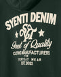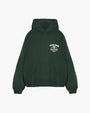This Forest Green hoodie offers a relaxed fit with drop shoulders for effortless style and comfort. Crafted from a heavyweight 420GSM pure cotton fabric, it provides durability and a premium feel. The subtle typography screen prints on the left chest and back add a refined graphic accent, making it a thoughtful addition to any casual wardrobe.