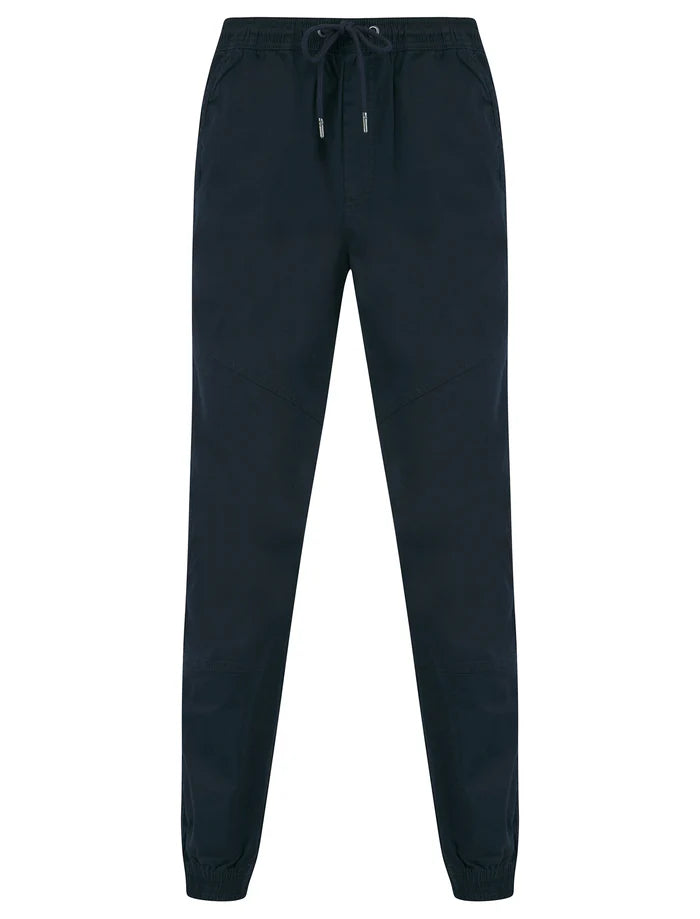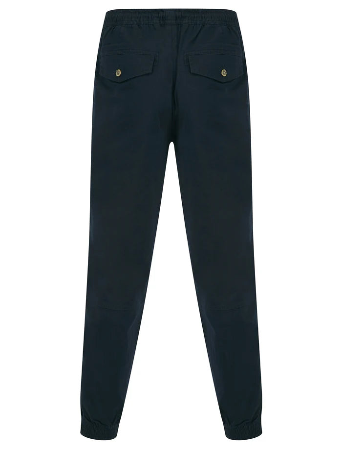 Refresh your weekend style with the Tokyo Laundry Portmany 2 cotton twill cuffed cargo jogger pants in a dark navy blue shade. Designed for comfort and ease, these joggers blend soft cotton twill with a hint of stretch for all-day movement. The elasticated ribbed waistband with adjustable draw cords ensures a perfect fit, while cuffed bottoms add a trendy twist. Perfect for relaxed days, they bring effortless athleisure vibes to your casual wardrobe with practical cargo pockets for on-the-go convenience.